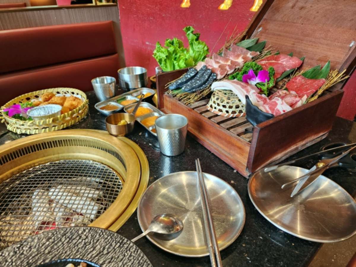 这家的烤肉本身好不好吃另说,量好大!量好大!量好大!我和凤梨两个人吃(并且我俩都没吃早饭)我本身胃口大,凤梨也不算是小鸟胃(至少比起泉咪她们胃口算是很大了)但是我俩最后没吃完198的两人套餐,撑到了!我真的有点惊艳这个量,因为我之前和章鱼纯氧老师她们去湖滨88吃,3个人一人均价也是100左右我没吃饱,而且因为看章鱼太困了所以我们早早就回去了。结果这次我俩吃饱了没吃完!量真的很足很棒!