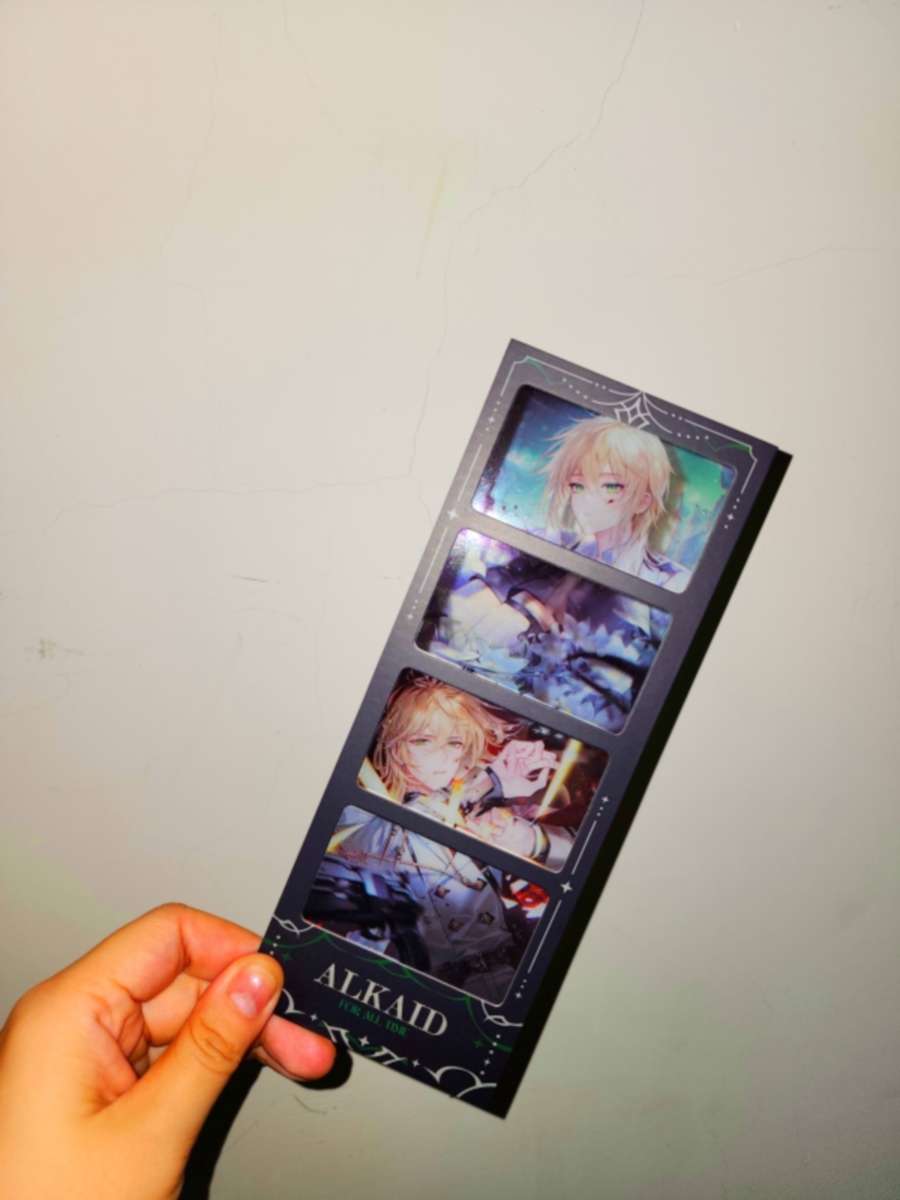 胶片是近几年绘旅人周边蛮喜欢做的一个制品,不过放在满赠里面一般是那种仿PVC电影胶片,这种的就比较像以前的胶卷照片的感觉了。一般来说这种类纸制品我都是会买的,相反吧唧倒是我时不时拿来凑单的东西。但好像后期如果要出物,吧唧最容易升值……怎么搞得像炒股票……
