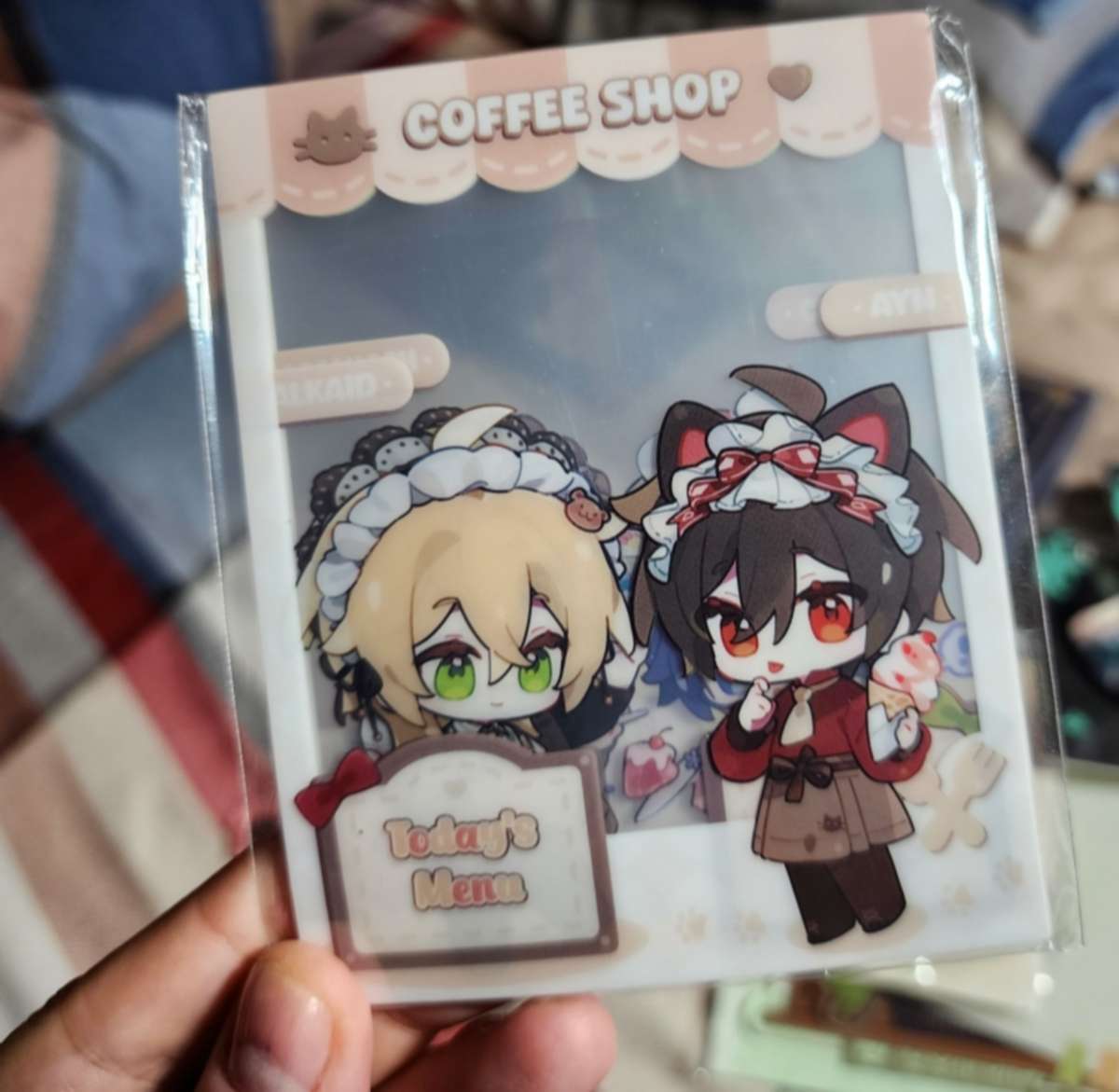 然后是咖啡厅新衣服的两个立牌,虽然一个说是写字板一个是立牌啦,趣味性是有做出来的,我个人更喜欢这个QQ人立牌!