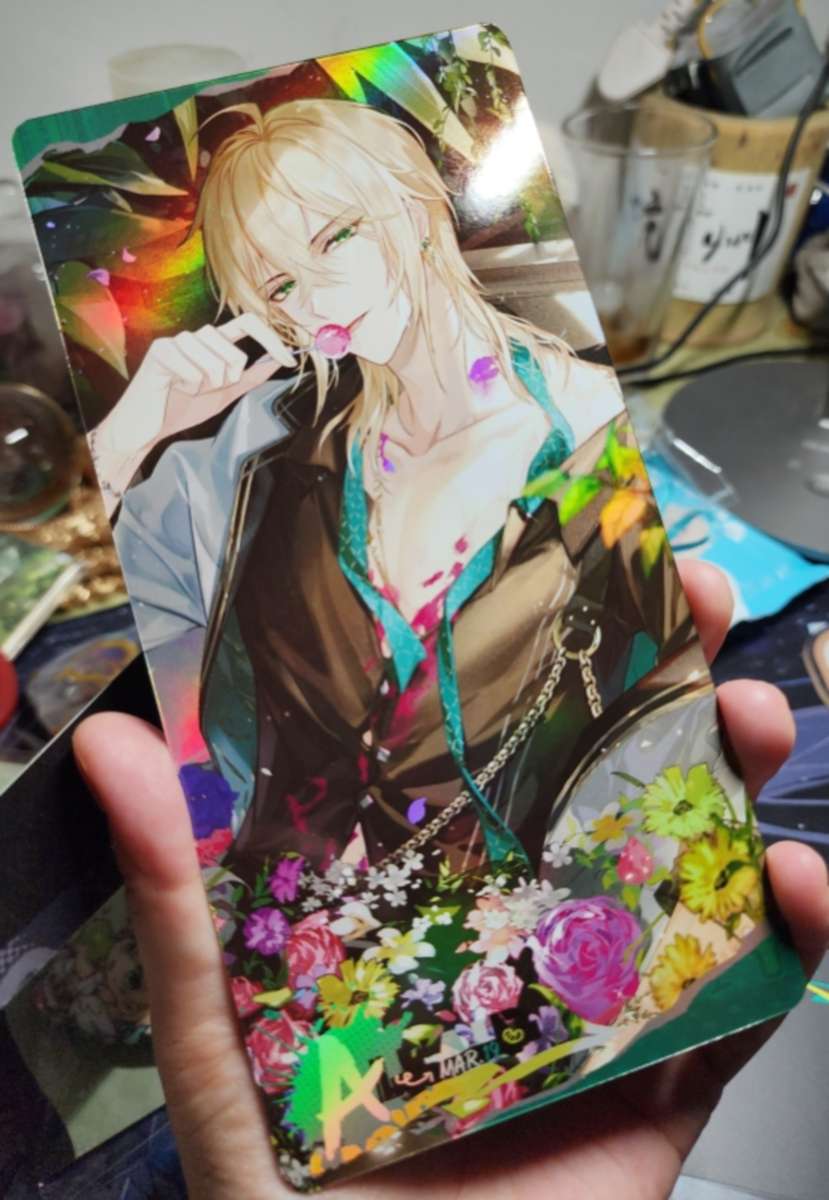 OK最后上我们的反光吧唧!今年的反光吧唧给到了这套图,白情那套图是用的啥工艺?不记得了,反正下个月发货就知道了(这么说来下个月是有两套谷子,一套白青,一套是路辰的生日谷=O=开开心心拆!)这个做反光吧唧真的不要太好看!而且这张照片我也拍得很满意!很难得拍得这么满意啊_(:з」∠)_反光吧唧真的有点难拍,小小得意一下<( ̄ˇ ̄)/ 月底就要七夕了,看上个月的布告栏今年的气息也依然会是一套CR图,说起来这一两年的海螺肉CR图其实画得大多数都很好看,可能是比起SSR不需要担心卡面剧情契合度之类的,所以自由度相对高一点,所以好看的图比较多。基本上符合命题作文主题就可以了。第一年的几张CR我还真的不太喜欢来着,比如第一次出CR是情人节的那个送花卡,路辰脸有点胖。但是像去年520,还有食物蜂蜜卡什么的我都挺喜欢。