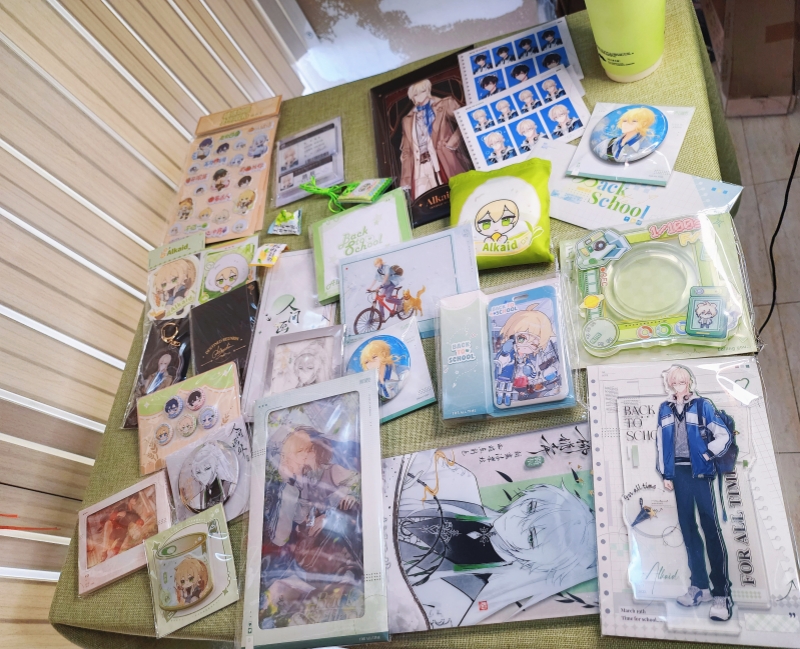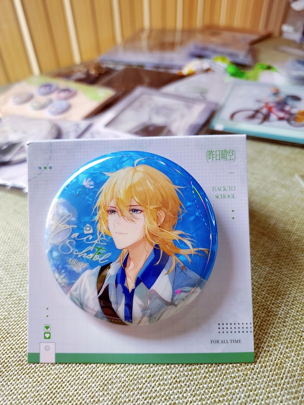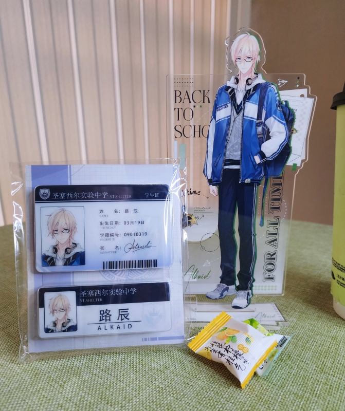 校园谷整体其实东西不算太多,除了常见的立牌,色纸,吧唧也就一个便签本还有个超可爱的发绳,啊那个发绳真的是很可爱,我甚至觉得是不是该买两个,不过主要也是我现在头发剪短了,发绳确实也用不上(要不我再养养?)这次的立牌非常意外地用了整体人设版图,也就是稍微带了点背景,还挺可爱的,不过大块的透底其实还不如抠出来了,那个望远镜做个挂件……学生证就不说了,这个反正必买。