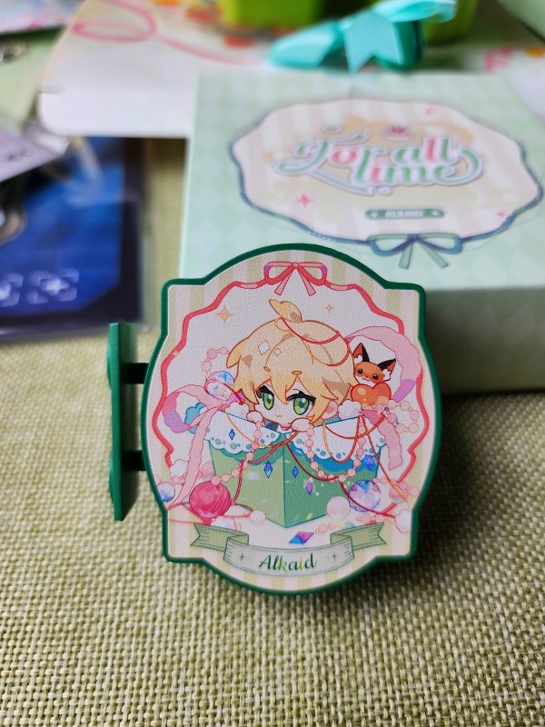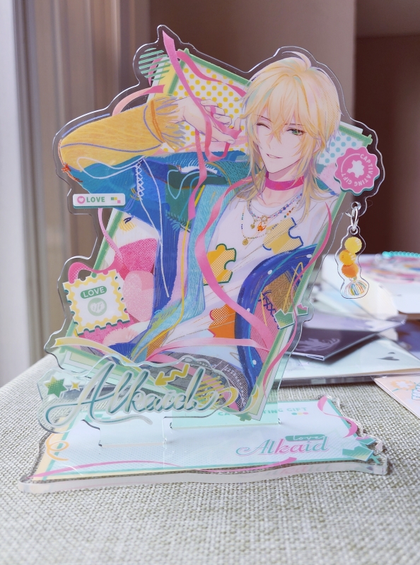 OK,绘旅人终于自己出斜插立牌了,上一次出是和名创的联名,但别说那个也是非常好看!建议下次多考虑考虑这种哦(´▽`ʃ♡ƪ)本身心动秘礼系列的卡就是带着彩铅风格的多巴胺配色所以做出来非常好看,但是有个比较致命的问题就是一旦光线不太对就会曝光过度导致颜色非常鲜艳,就是那种荧光绿和死亡芭比粉的感觉,不要问我怎么知道的。
